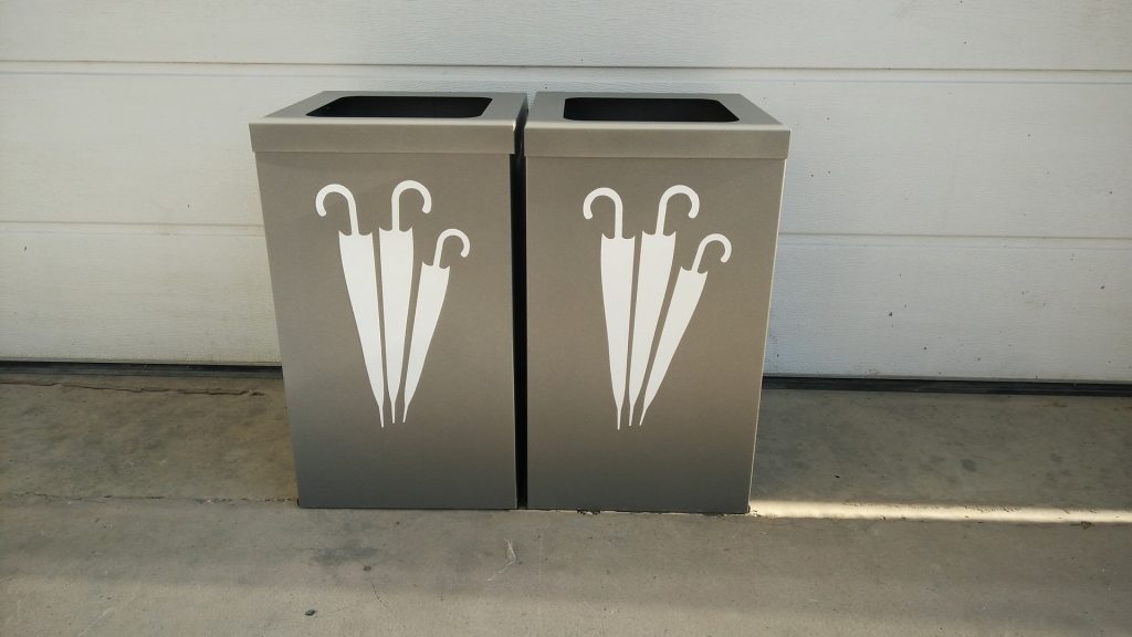 - koš za dežnike (velikost 40 litrov, z odprtino velikosti 200 x 200 mm, brez vrečke, z zatesnjenim ohišjem, ki onemogoča iztekanje vode);