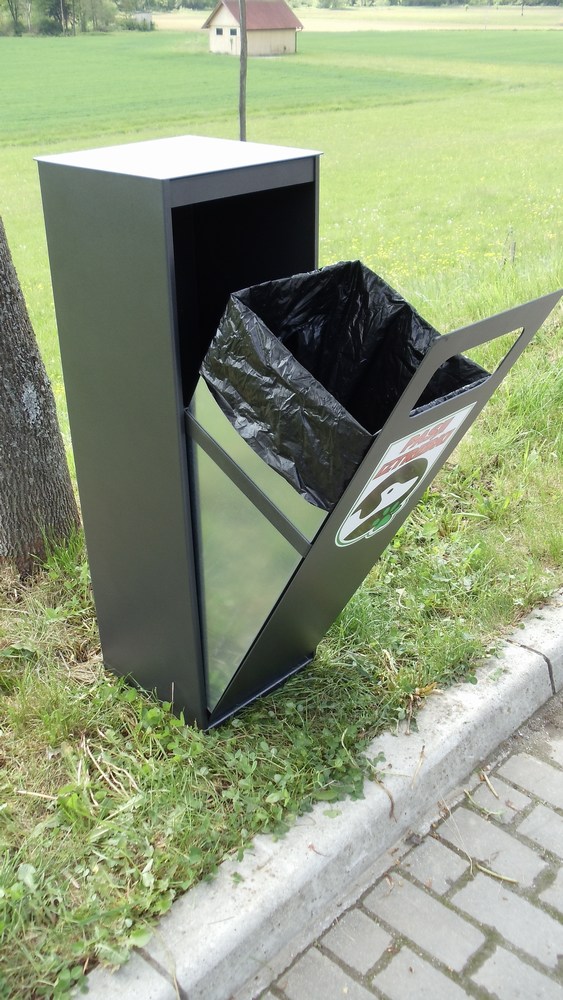 V notranjosti koša je nameščena 60 litrska posoda iz pocinkane pločevine. Koš lahko uporabljamo z vrečko ali brez. Koš omogoča zelo enostaven postopek praznjenja odpadkov oz. menjave vrečke:
